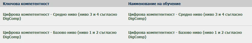 Към момента сме регистрирани като Доставчици на обучение към Агенция по заетостта за организиране на обучения по: